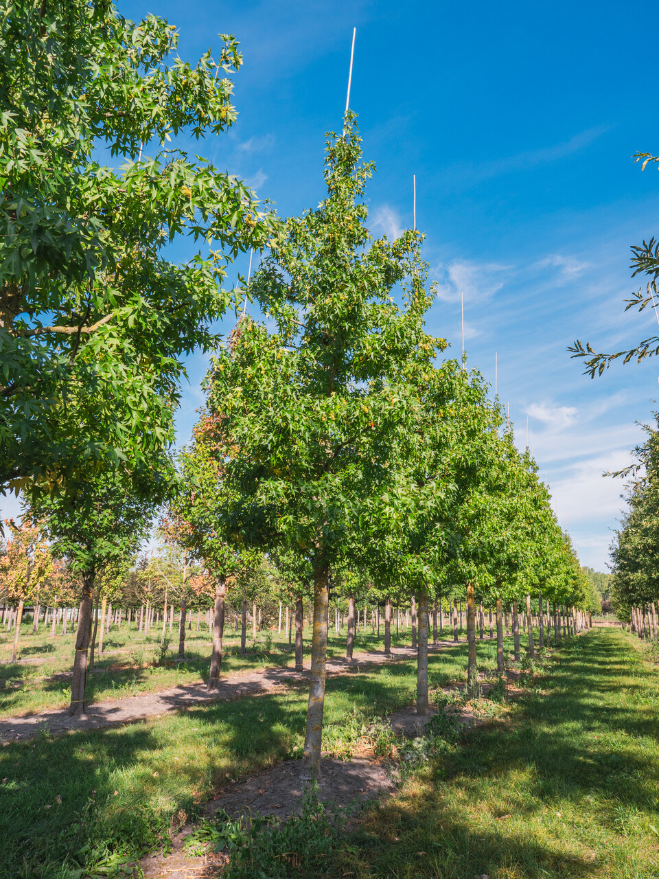 Liquidambar styraciflua 'Worplesdon' können je nach Sorte, Standort und Klimabedingungen eine Höhe von bis zu 12-15 m erreichen.