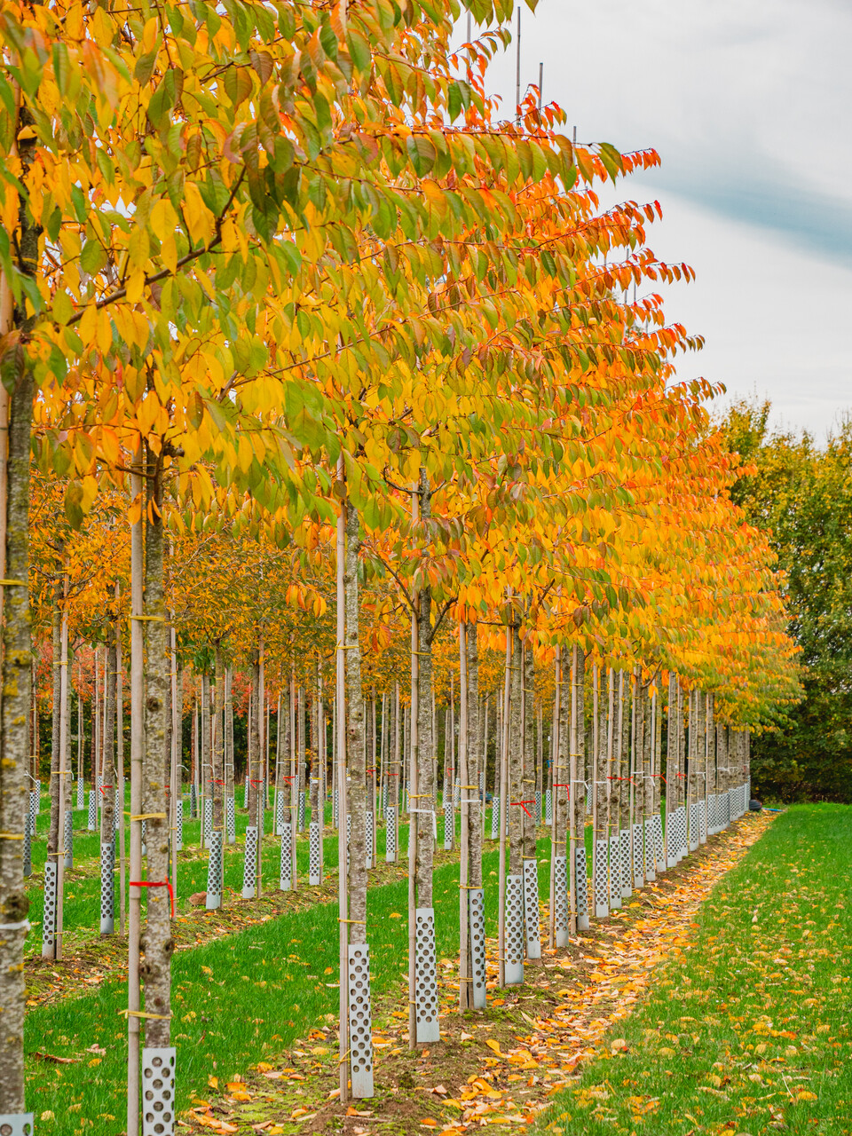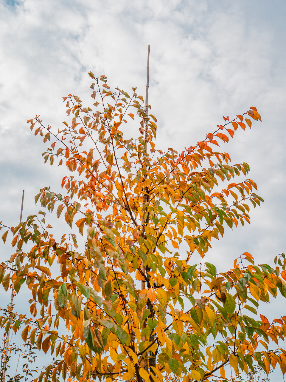 Die Blätter der Prunus ×yedoensis werden im Herbst gelb.