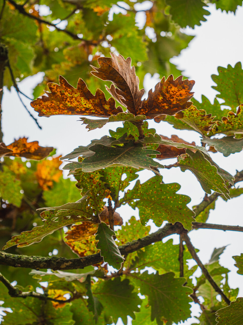 Die Blätter der Quercus dentata 'Carl Ferris Miller' werden im Herbst gelb.