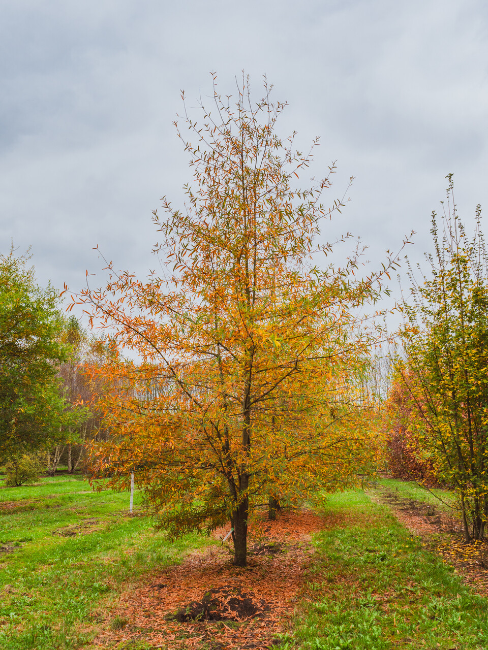 Ein in den Vereinigten Staaten in feuchten, aber gut entwässerten Gebieten, wild vorkommender Baum. In warmen Regionen behält er sein Blatt teilweise oder ganz, während er in kalten Regionen meist laubabwerfend ist. An seinem Naturstandort wird er bis zu 30 m hoch, während er in Kultur 15 bis 20 m hoch wird. Die dunkelgraue Rinde wird bei älteren Exemplaren etwas rau und löst sich in kleinen Plättchen ab. Die jungen, olivgrünen Triebe sind samtig behaart, werden aber schon schnell kahl und braungrün. Das Blatt ist schmal-lanzettförmig und hat viel Ähnlichkeit mit dem der Weide. Es ist 5 - 15 cm lang und 1 bis 1,5 cm breit. Es ist an der Oberseite dunkelgrün und unterseits blaugrün gefärbt. Der ganzrandige Blattrand ist leicht wellig. In Gebieten, wo der Baum im Winter sein Laub abwirft, bekommt er eine hellgelbe Herbstfärbung. Die Eicheln sind maximal zu 1/3 vom Becher umgeben.