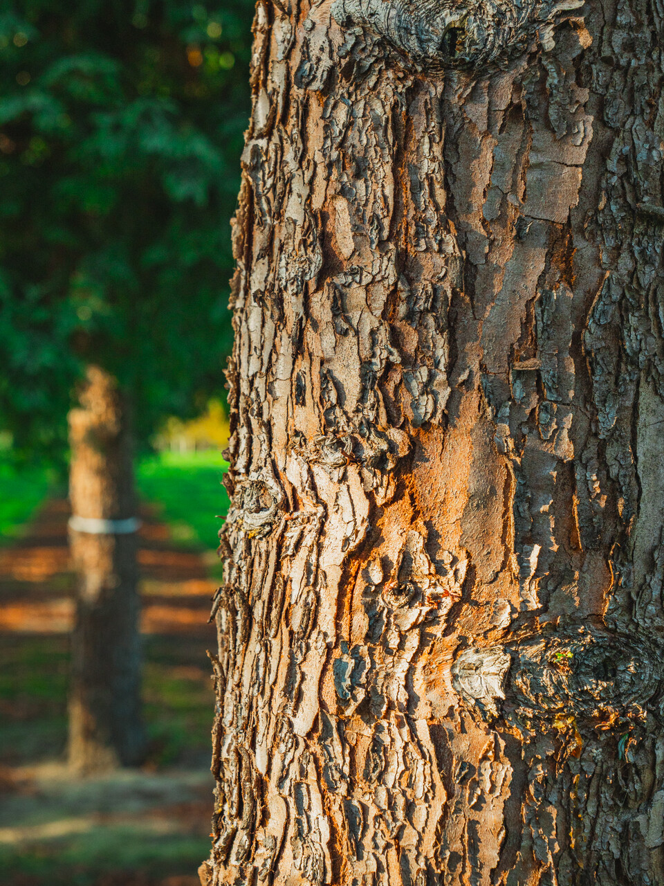 Zweige rotbraun, Rinde orangebraun, zart faserig in langen Streifen abschuppend
