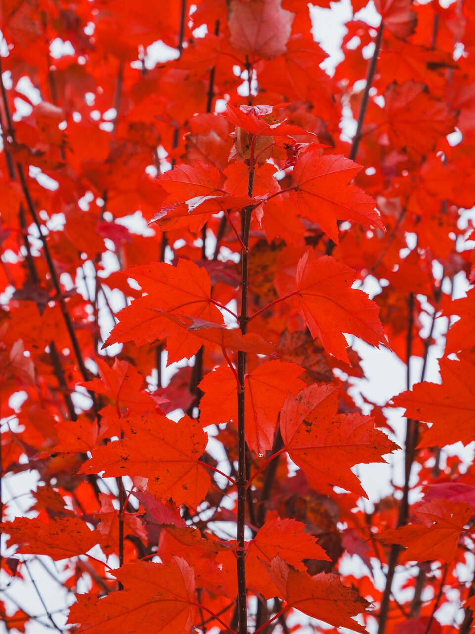 Die Blätter der Acer rubrum 'Brandywine' werden im Herbst rot, lila.