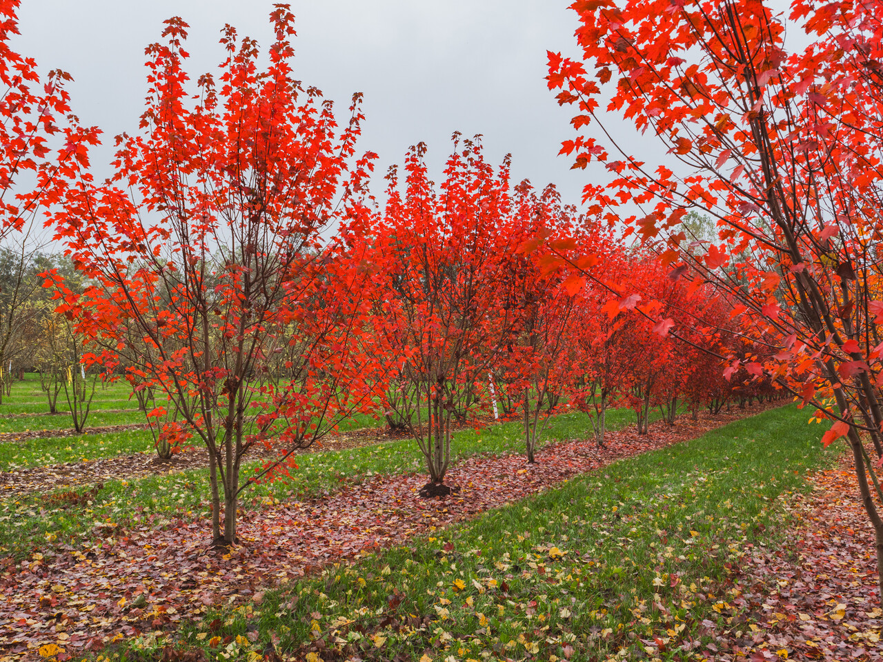 Acer rubrum 'Brandywine' können je nach Sorte, Standort und Klimabedingungen eine Höhe von bis zu 8-10 m erreichen.