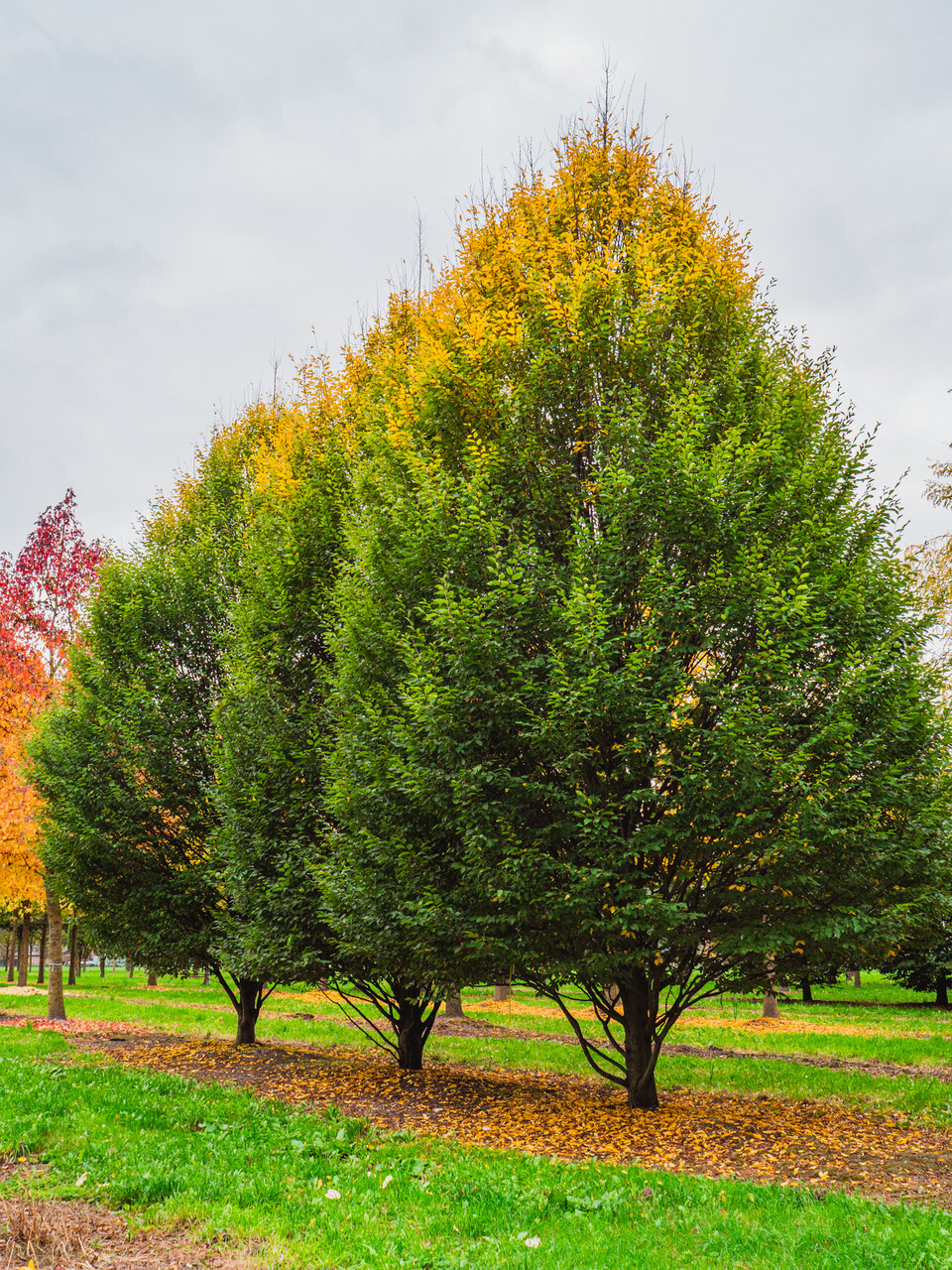 Die Blätter der Carpinus betulus 'Fastigiata' werden im Herbst gelb.