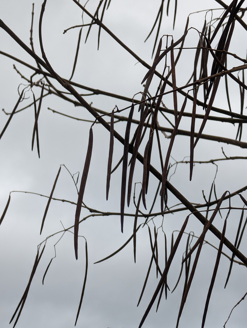bis zu 35 cm lange, dünne Hülsenfrucht