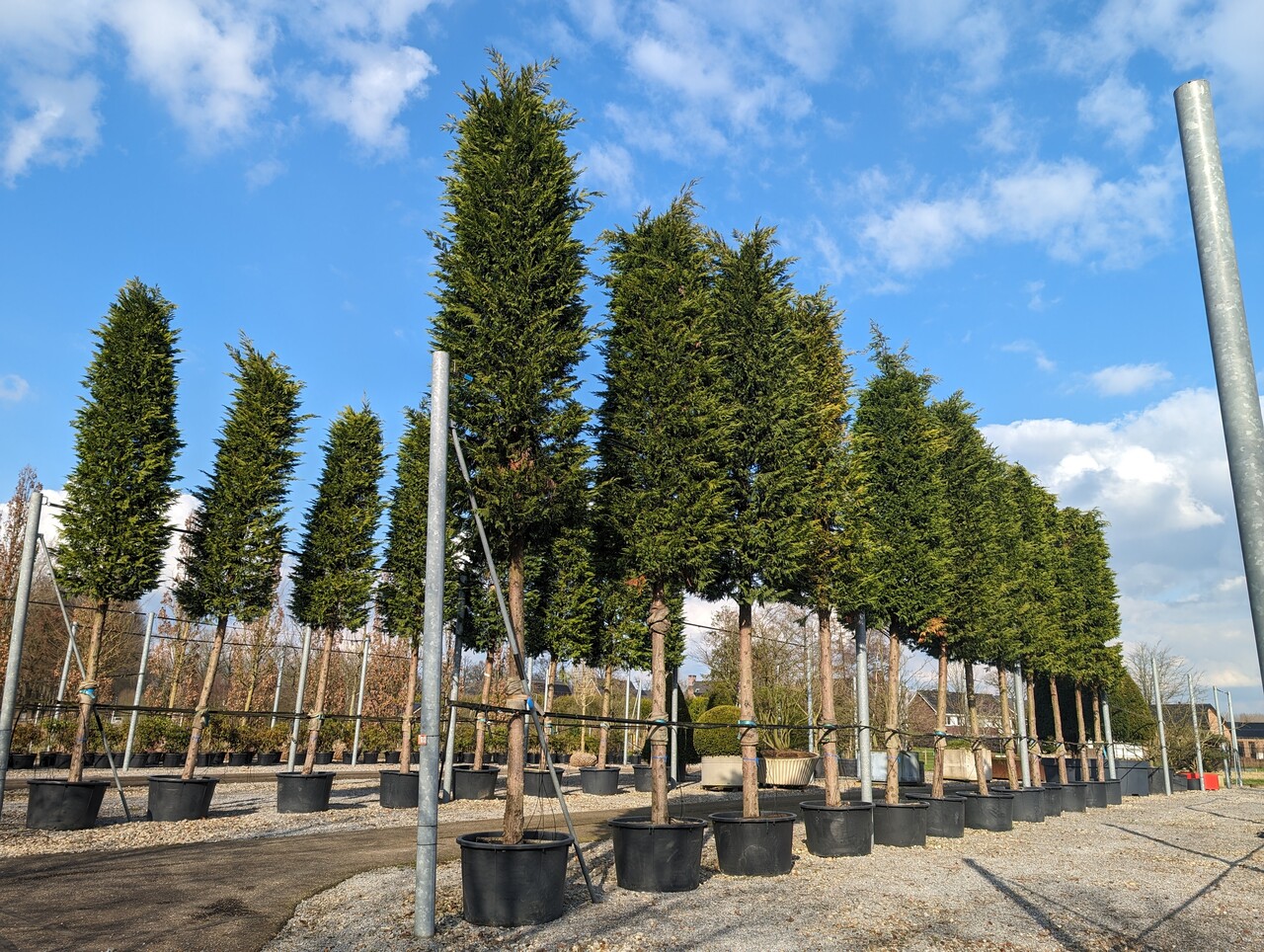 Große säulenförmige bis schmal pyramidenförmige Konifere mit einer dichten Verästelung, die einfach zu einem Baum von 15 bis 30 m Höhe heranwachsen kann. Die Rinde ist rotbraun und löst sich in späteren Jahren in langen, faserigen Platten ab. Die jungen Zweige sind erst grüngelb, später hellrotbraun. Das Laub ist matt mittelgrün. Der Baum wächst in allen Böden, sofern sie gut durchlässig und ausreichend feucht sind. Außerdem verträgt er viel Wind. Die Konifere gehört neben verschiedenen Sorten von Chamaecyparis lawsoniana und Thumit giftigen Teilen zu den beliebtesten Heckenpflanzen. Die von Natur aus schmale Gestalt ist ein Vorteil bei der Verwendung als Heckenpflanze, denn der Baum lässt sich sehr gut zurückschneiden. Aufgrund des kräftigen Wachstums muss er zweimal pro Jahr geschnitten werden, wobei eine sehr dichte Hecke entsteht. Der Baum entstand 1888 aus einer Kreuzung zwischen Chamaecyparis nootkatensis und Cupressus macrocarpa.