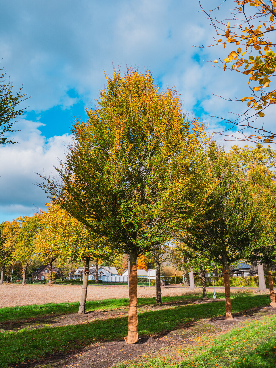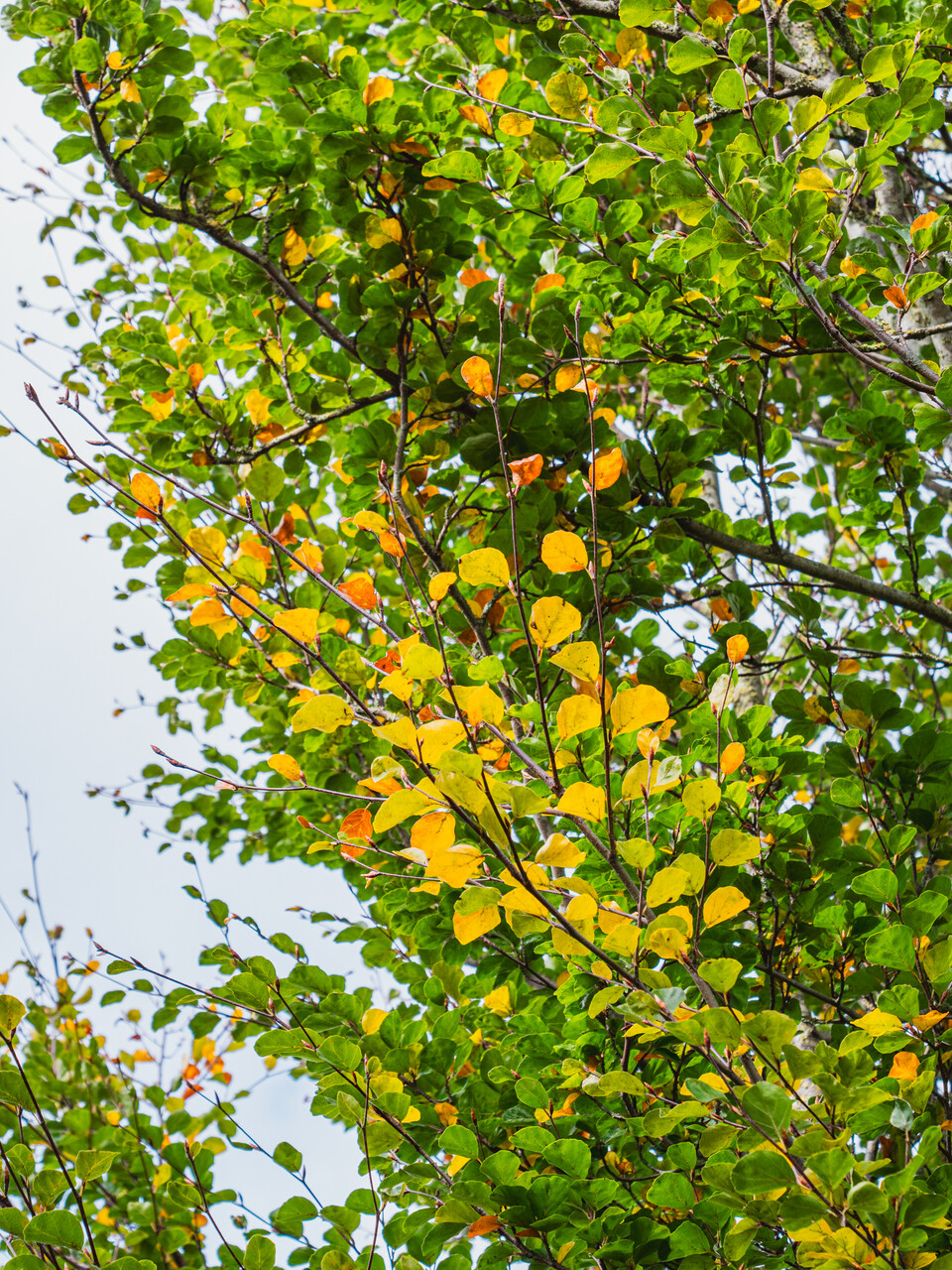 Die Blätter der Fagus sylvatica 'Rotundifolia' werden im Herbst gelb.