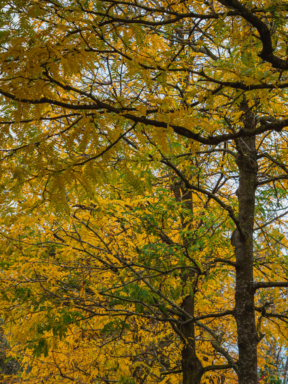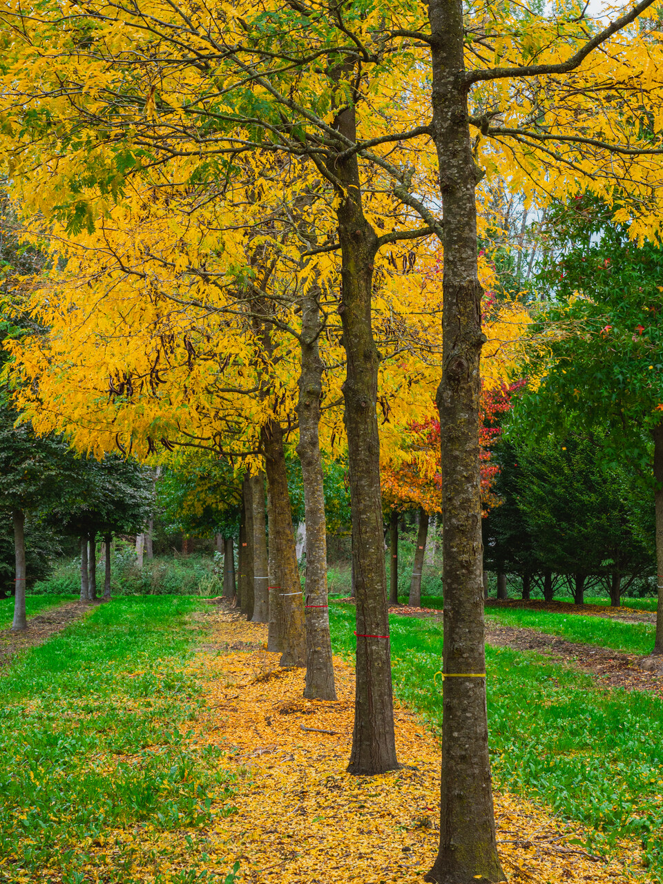 Die Blätter der Gleditsia triacanthos f. inermis werden im Herbst gelb.