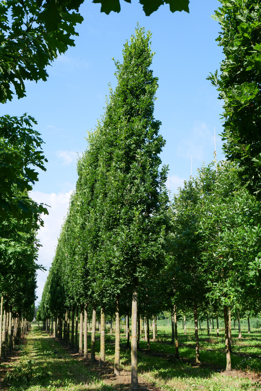 Quercus robur 'Fastigiata v.d.Berk' können je nach Sorte, Standort und Klimabedingungen eine Höhe von bis zu 10-15 m erreichen.