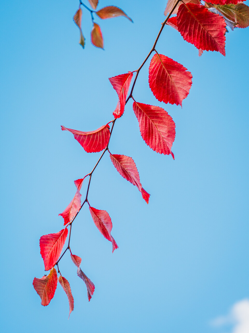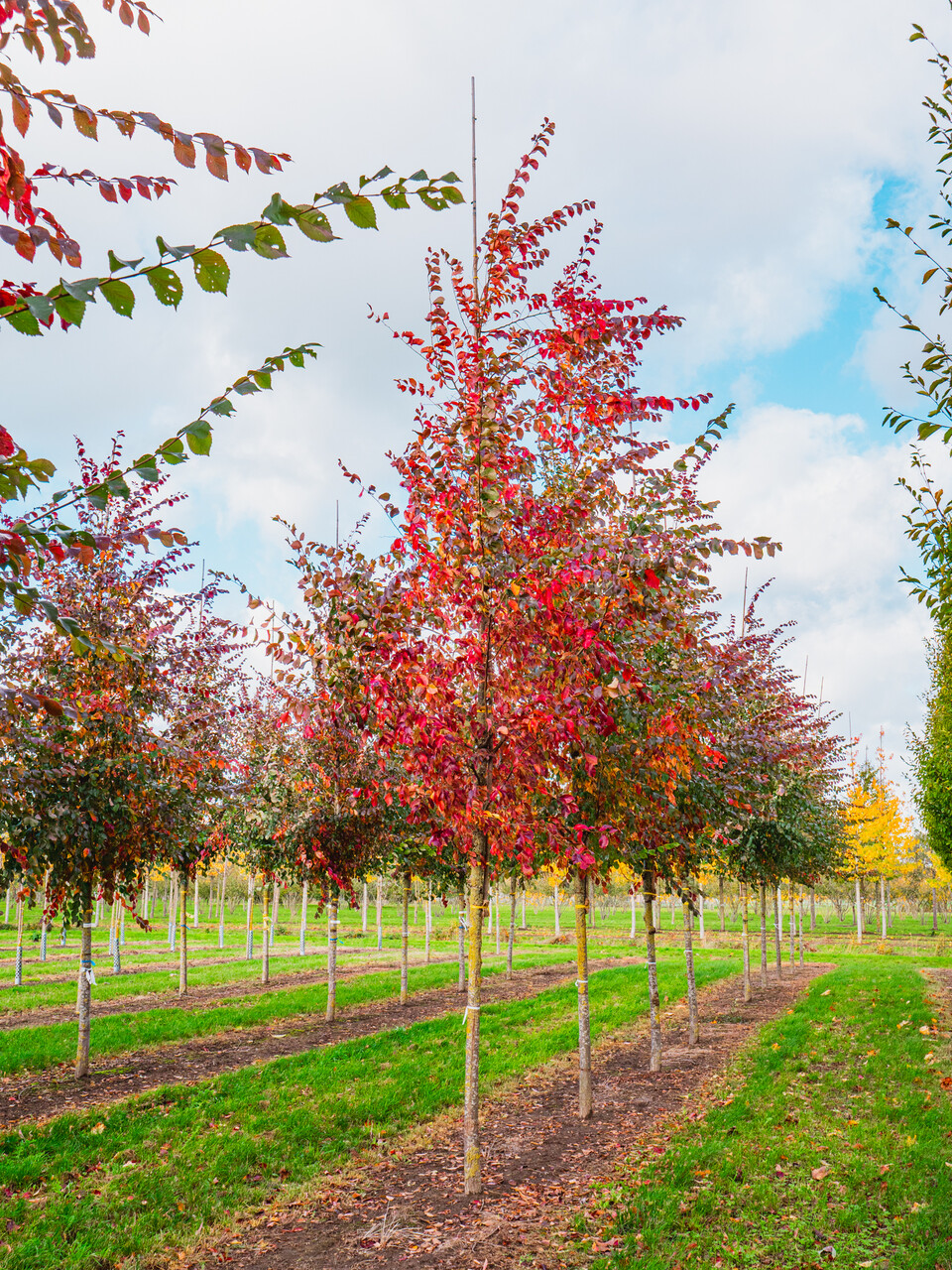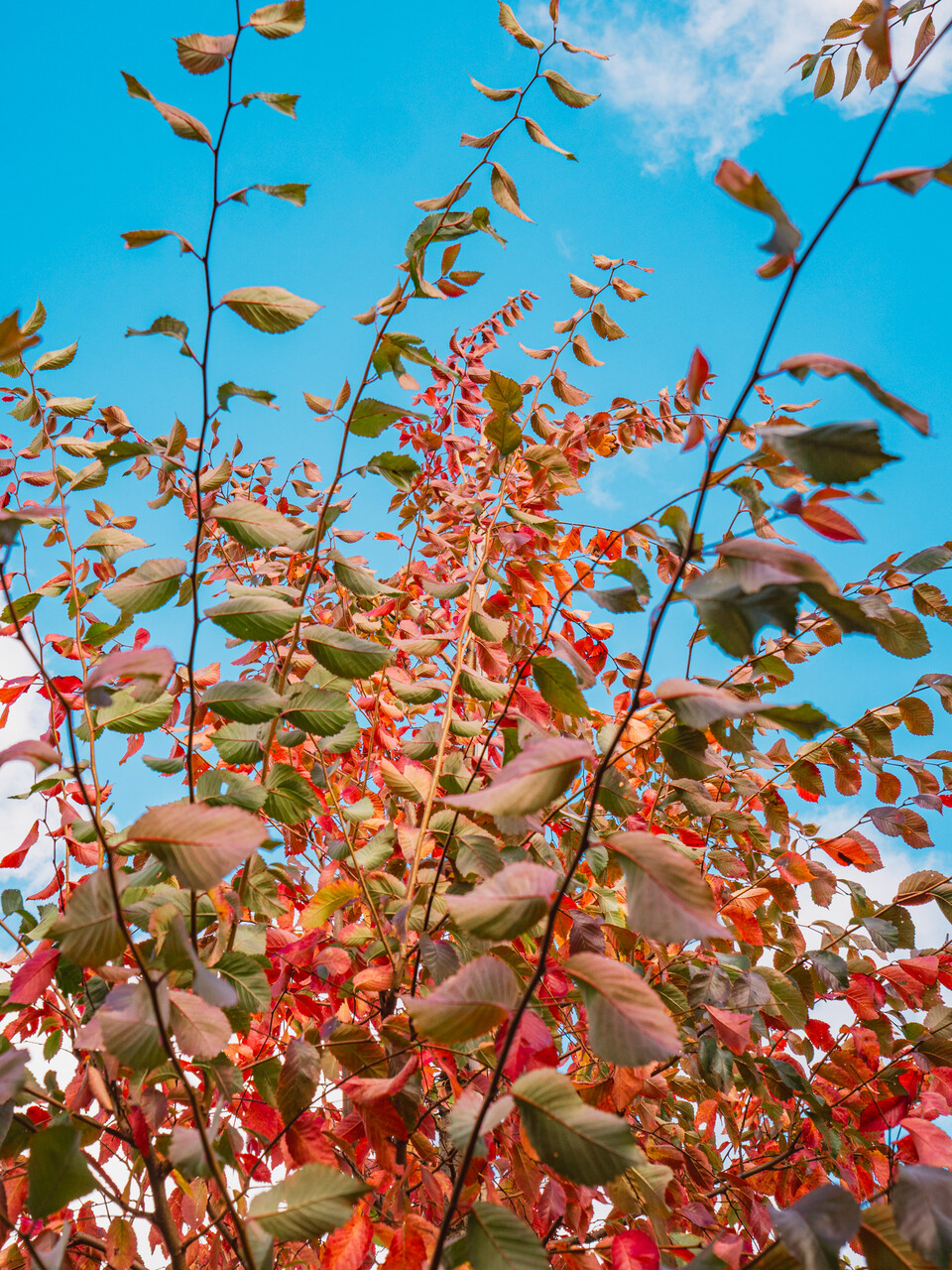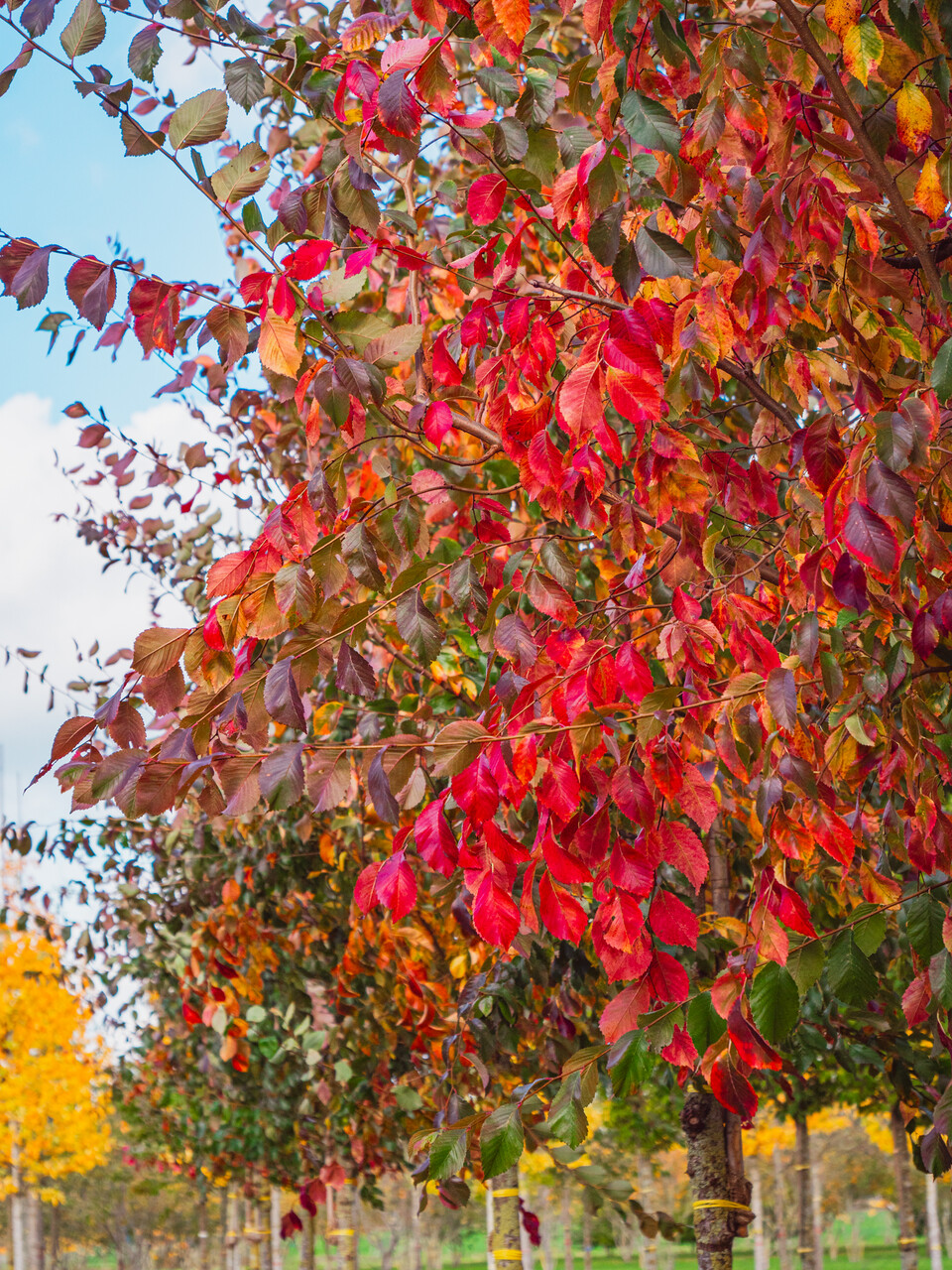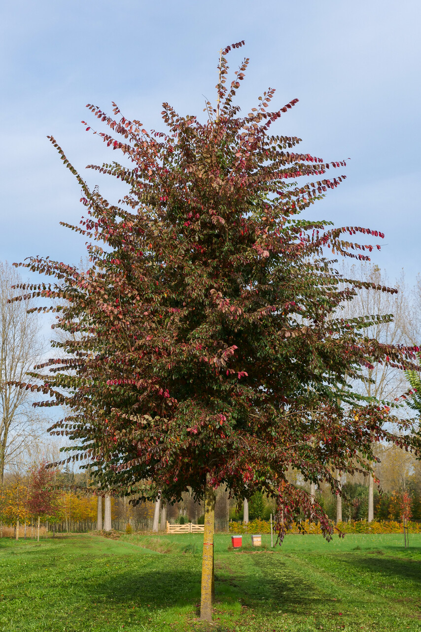 Die Blätter der Ulmus 'Frontier' werden im Herbst rot.