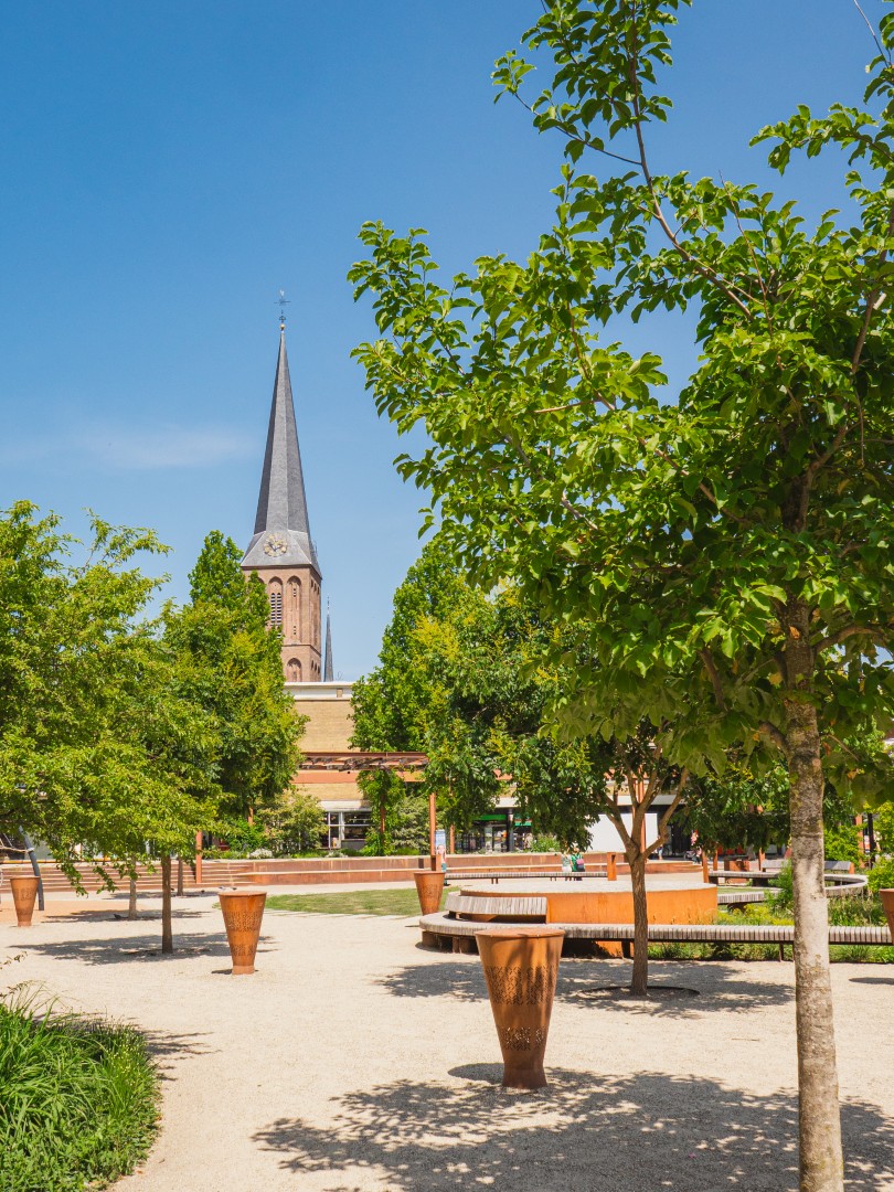 Der Marktplatz von Hengelo wurde 2023 neu gestaltet. Wo zuvor ein kahler, befestigter Platz war, ist nun im Rahmen der städtischen Erneuerung ein grüner öffentlicher Raum entstanden. Für dieses Projekt wurden Bäume mit einem Stammumfang von 30–35 cm und verschiedene mehrstämmige Bäume bis zu 300–400 cm Höhe geliefert. Alle Bäume wurden mit einem Wasserpuffersystem gepflanzt.