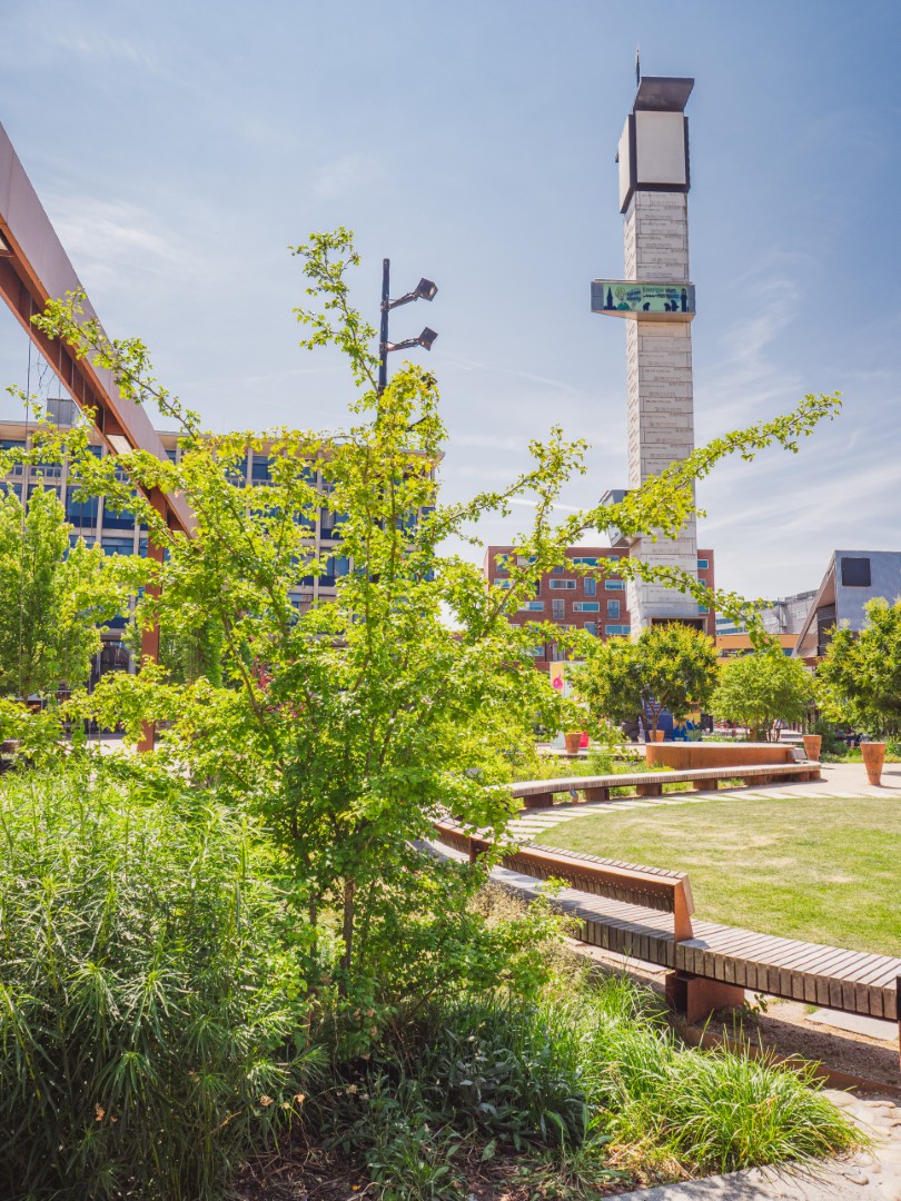Jeder Baum wurde in eine Pflanzgrube von 30 m² gepflanzt, ausgestattet mit einer 15 cm dicken Schicht Steinwolle (Rockflow), die bis zu 96% ihres eigenen Volumens an Wasser speichern kann. Dies versorgt die Bäume bis zu sechs Wochen mit Wasser, auch während Trockenperioden. Eine Kiesschicht am Boden sorgt für einen kapillaren Bruch und verhindert Wasseransammlungen an den Wurzeln.