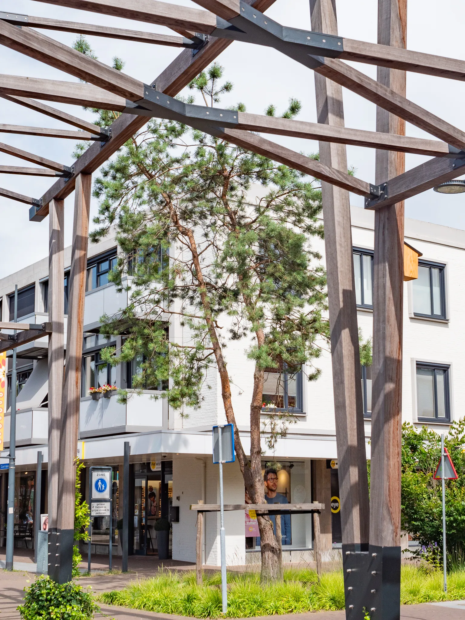 Eine auffällige Ergänzung sind die zwei mehrstämmigen Pinus sylvestris mit einer Höhe von 800 bis 900 cm. Diese Blickfänger verleihen dem Raum ein kraftvolles und zeitloses Gefühl. Zusätzlich haben wir verschiedene Hochstammbäume geliefert, wie Fagus sylvatica ‘Atropunicea’, Tilia platyphyllos ‘Örebro’ und Ulmus columnella, mit Stammumfängen von 40-45 cm. Diese Bäume bilden ein grünes Dach und schaffen schattige Plätze, an denen Menschen verweilen können.